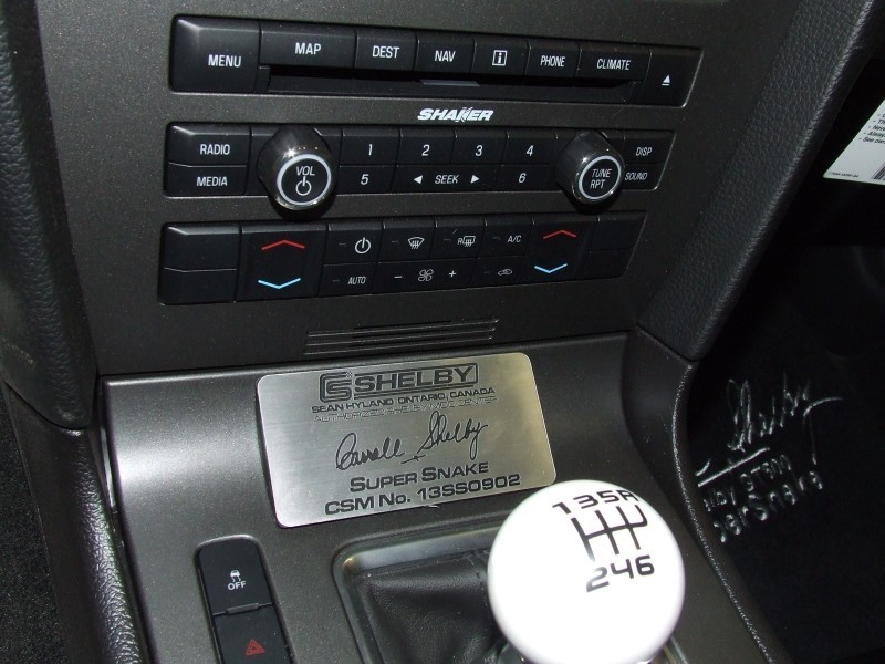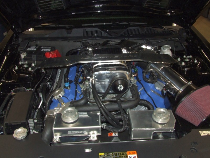 Includes 6 piston front brakes, 6 piston rear brakes, red or black calipers, 20 inch 3 piece wheels, black or brushed aluminum, Michelin Pilot Sport tires, lowering springs, Shelby stainless mufflers, side scoops, ¼ window scoops, Supersnake hood, carbon fiber front splitter, Supersnake stripes, black, white or red, Shelby cooling package, Shelby shifter, knob, Shelby embroidered carpet set, Shelby gauge kit, Shelby badging, lighted Supersnake sill plates, polished Kenne Bell Supersnake supercharger